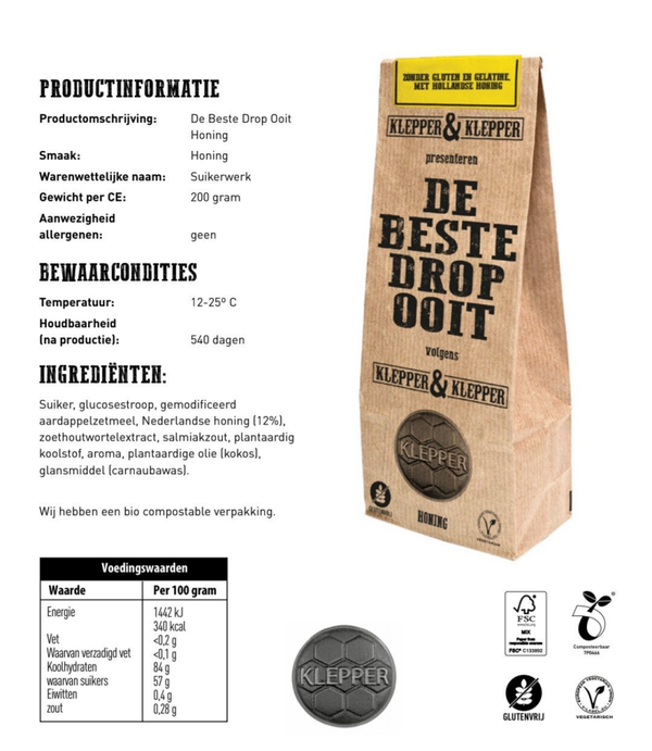 En na een paar maanden was het dan zover. De Beste Honingdrop Ooit kon in productie. De ideale verhouding was duidelijk: in De Beste Honingdrop Ooit zit maar liefst 12% echte Hollandse honing uit Nederland. Ja, u lees het goed: 12% vloeibaar goud. En dat proef je.