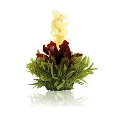 Theebloem raspberry, framboos, met een basis van groene thee. Theebloemen zijn een lust voor het oog. Elke theebloem wordt met de hand gemaakt. Vakmensen bundelen theebladeren en de gedroogde bloem tot een bolletje. Zodra de thee bloemen in aanraking komen met gekookt water ontvouwen ze zich tot een prachtige bloem doordat het water opgenomen wordt. Het zorgt voor een uniek schouwspel in uw theepot. Na dit proces kunt u genieten van een heerlijke kop thee, vol van smaak.
