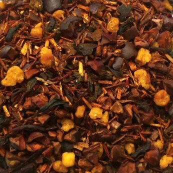 Ingrediënten: cacaobonen, noot-krokant strooisel (suiker, hazelnoot, caramelsuiker siroop), rooibos, Zwarte Thee, aroma