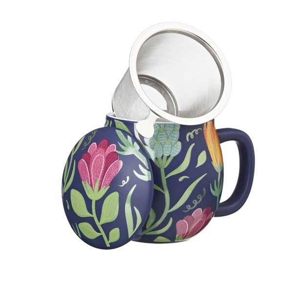 Porseleinen theemok met deksel en roestvrijstalen filter (0,35 Lt)