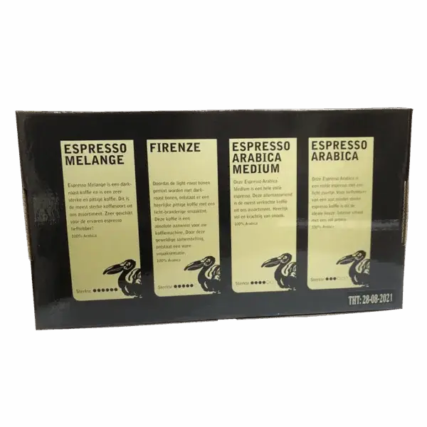 Proef nu een selectie van onze espresso koffiesoorten! Deze Espresso Box bestaat uit 4 koffiesoorten (à 250 gram per koffiesoort). Leuk als geschenk of om zelf verschillende koffiesoorten te ontdekken.