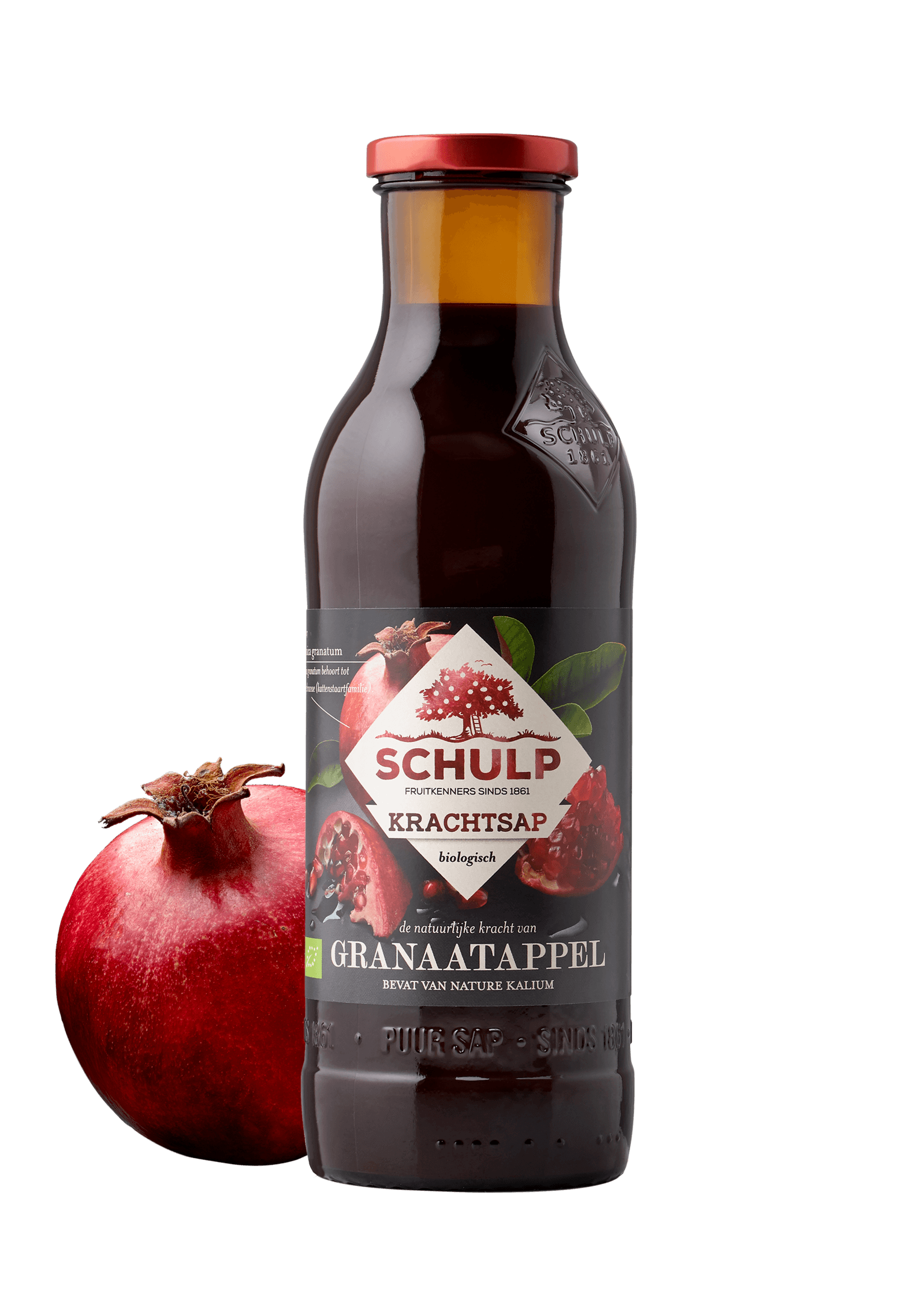 Granaatappels behoren tot de oudste fruitsoorten van de wereld en zijn oorspronkelijk afkomstig uit het voormalig Perzië. Zongerijpte granaatappels worden in land van herkomst geperst en bij Schulp verder verwerkt en gebotteld. Ons gebruiksadvies: dagelijks ± 100 - 200 ml.