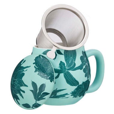 Porseleinen theemok met exclusief La Via del Tè Chelsea design Water Groen (350 cc) met deksel en roestvrijstalen zeef, ideaal om snel je favoriete thee te bereiden.
